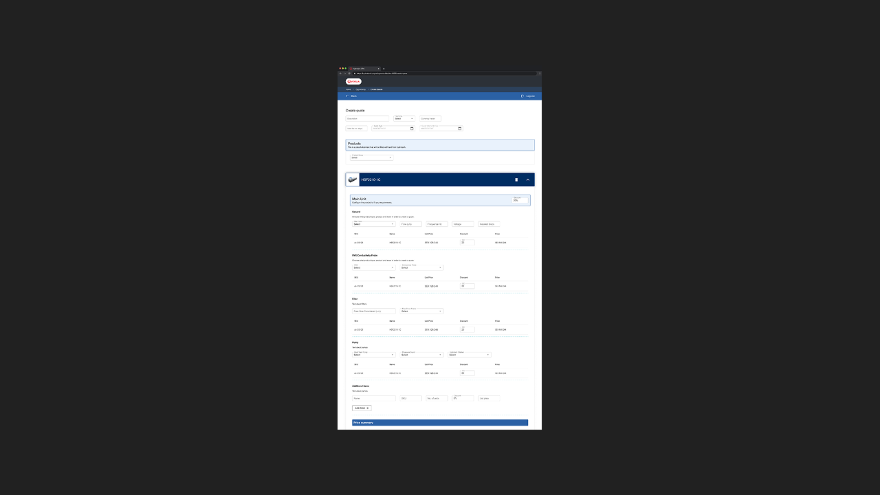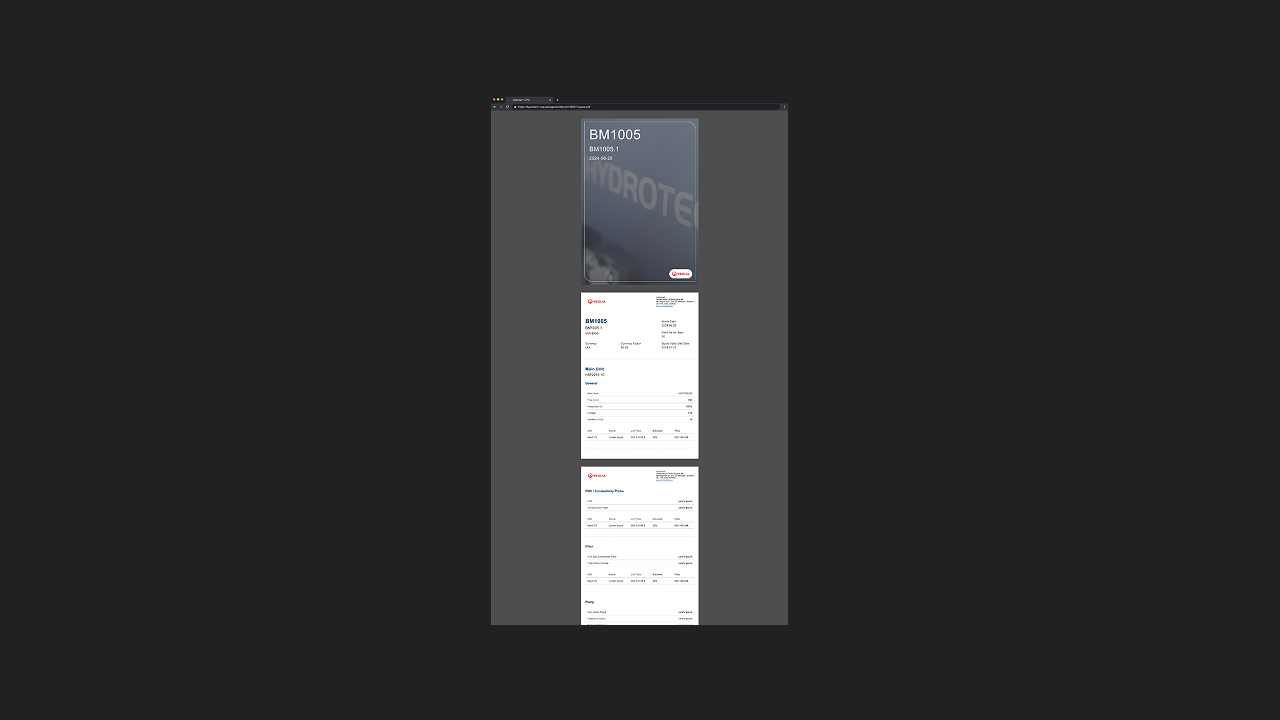Directly creating a PDF version of the digital order previously created, making the life easier for the sales-team. Streamlining the quote structure while reducing time spent for the workers.